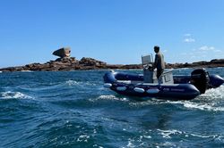 Această barcă cu motor 2016 3D Tender X Pro 535 - Armaga este potrivită pentru 6 persoane. Este andocată în Port de Trégastel, Franţa.