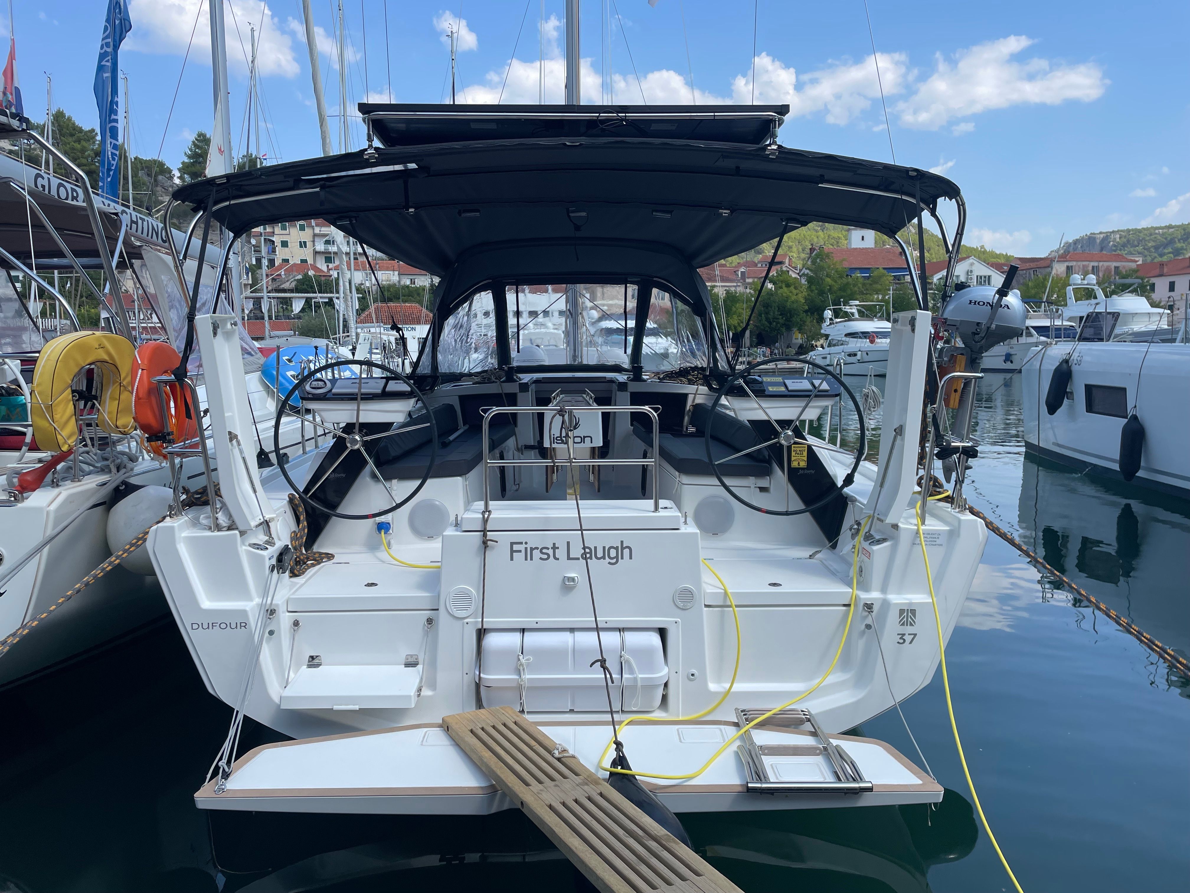 3-cabin sailing yacht Dufour 37 - First Laugh was built in 2024 and it is docked in ACI Marina Skradin, Croatia.