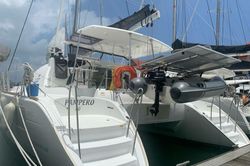 This catamaran is operated by the charter company Sailoe Seychelles.