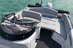 Boat equipment features a classic mainsail, a bimini and an outside GPS plotter. It also boasts an audio system and outside speakers. The fully-equipped galley includes a fridge, an oven, a cooker, a sink and kitchen utensils.