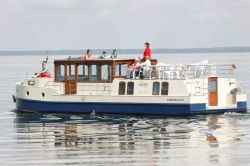 This houseboat is equipped with a radar, a bimini and a bow thruster. In chilly weather, guests will benefit from heating. A flat screen TV, an audio system, outside speakers, a flybridge and inside speakers are also available.