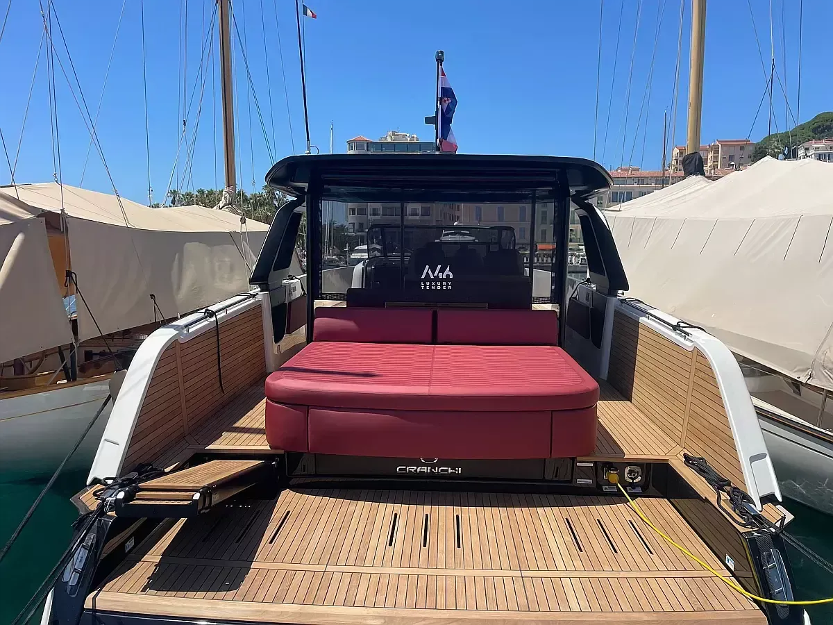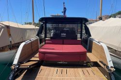 Boat equipment features a classic mainsail, electric winches, solar panels, a radar, a generator and a salon GPS plotter. It also boasts a jet ski, a flat screen TV, heating, air conditioning and an audio system. The fully-equipped galley includes a microwave, a dishwasher, an ice maker, a freezer and a coffee machine.