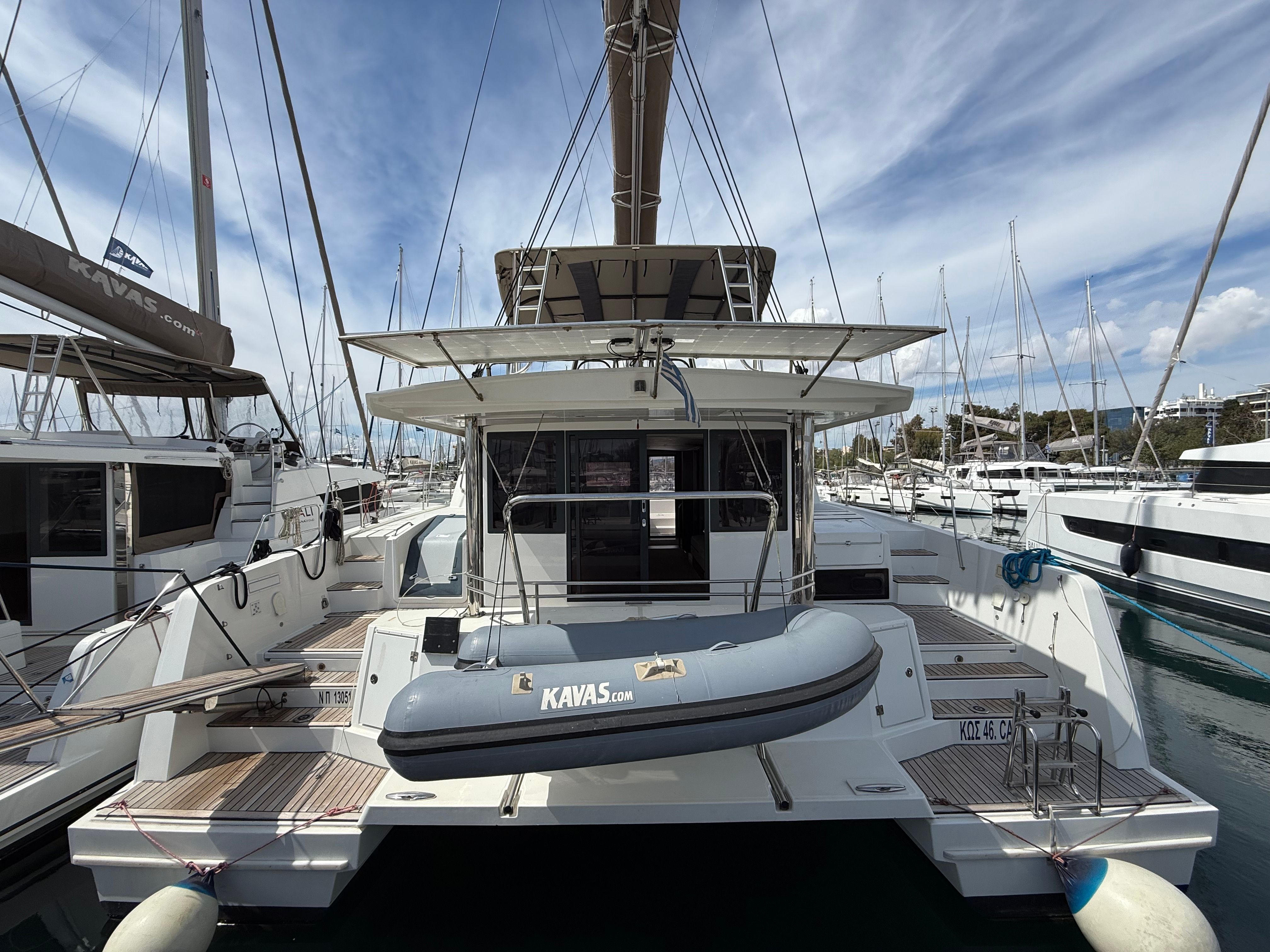 6-cabin catamaran Bali 4.6 - Kos 46.Cat3 was built in 2022 and it is docked in Marina Alimos, Greece.