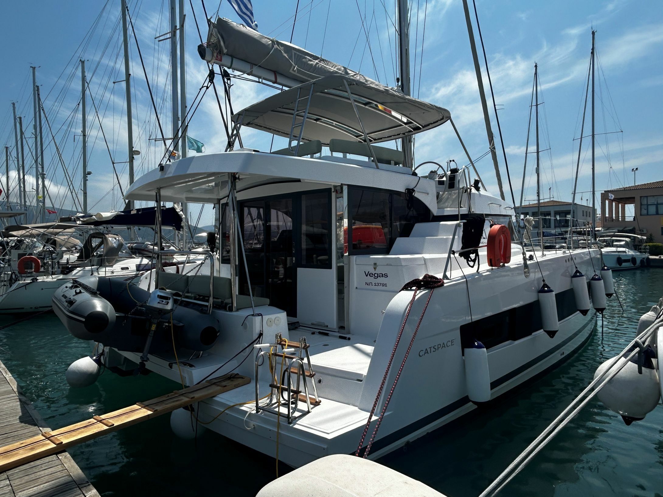 3-cabin catamaran Bali Catspace - Vegas was built in 2025 and it is docked in Nydri marine, Greece.