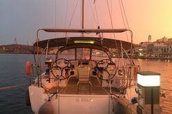 Boat equipment features a classic mainsail, solar panels, a salon GPS plotter, a bimini and a bow thruster. It also boasts an audio system, a DVD Player and outside speakers. The fully-equipped galley includes a coffee machine, a fridge, an oven, a cooker and a sink.