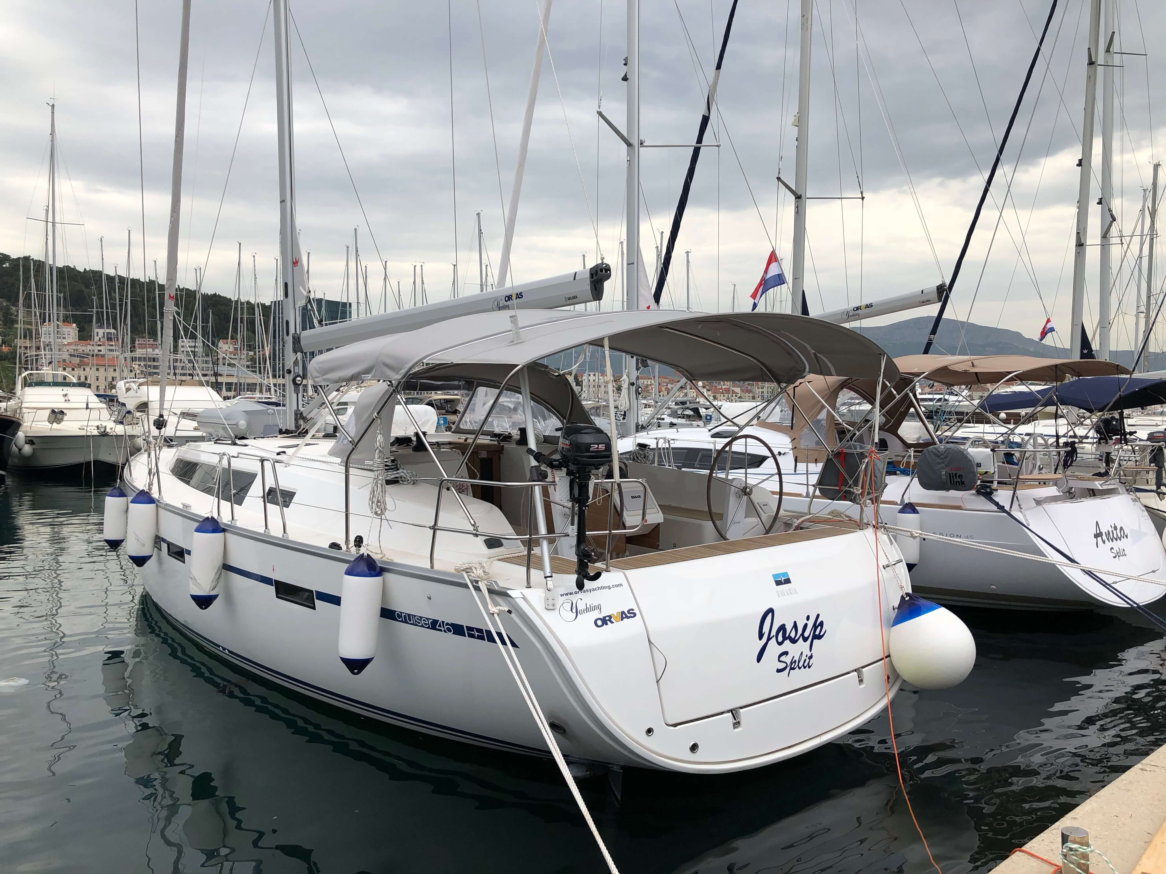 4-cabin sailing yacht Bavaria Cruiser 46 - Josip was built in 2018 and it is docked in ACI Marina Split, Croatia.