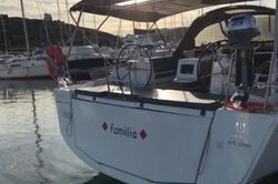 Boat equipment features a classic mainsail, solar panels, a bimini and a bow thruster. It also boasts heating, an audio system, outside speakers and inside speakers. The fully-equipped galley includes a fridge, an oven, a cooker, a sink and kitchen utensils.