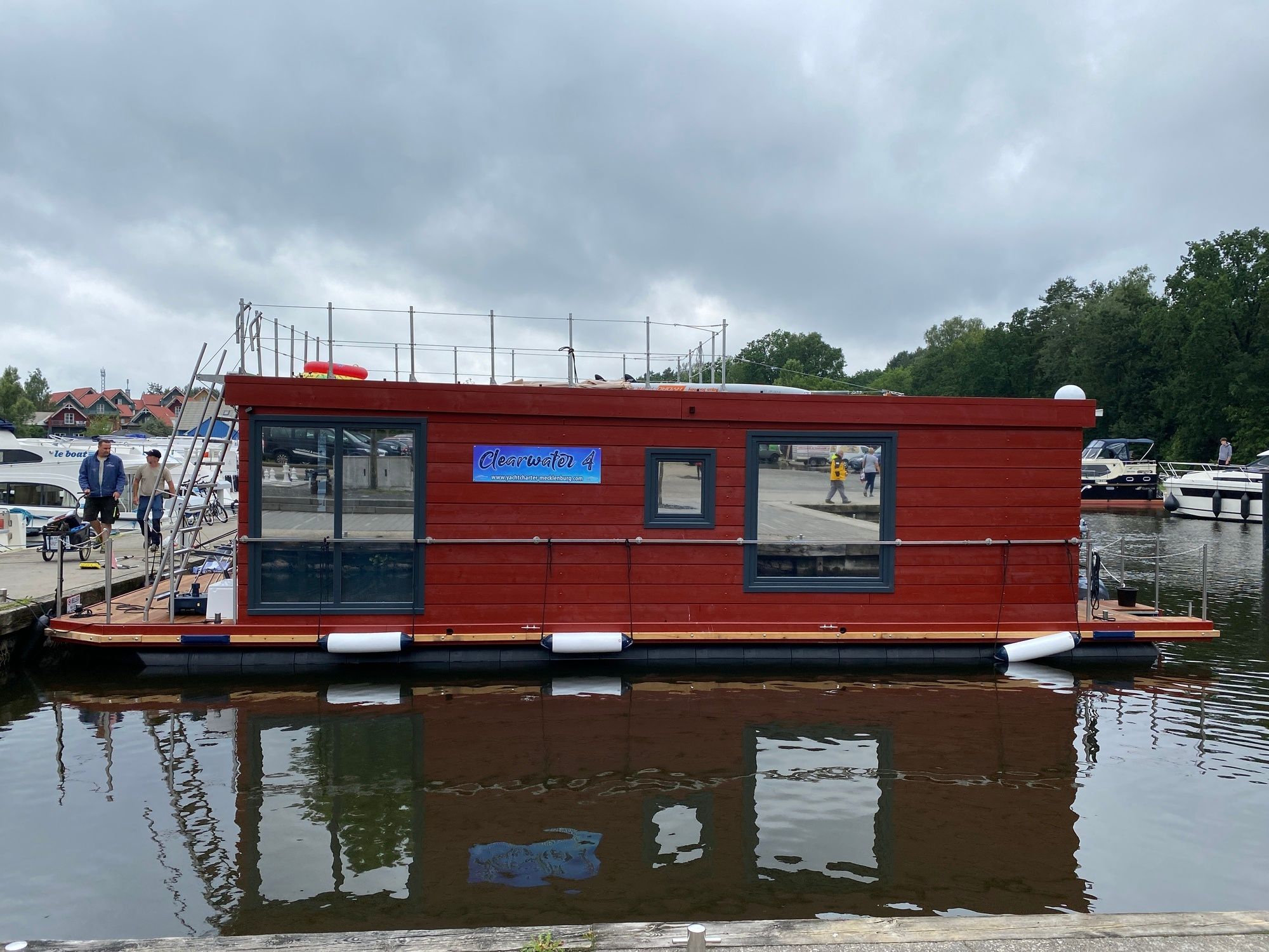 The Custom Built 39 Clearwater 4 houseboat was built in 2021, and renovated in 2022. It is docked in Marina Wolfsbruch, Germany.