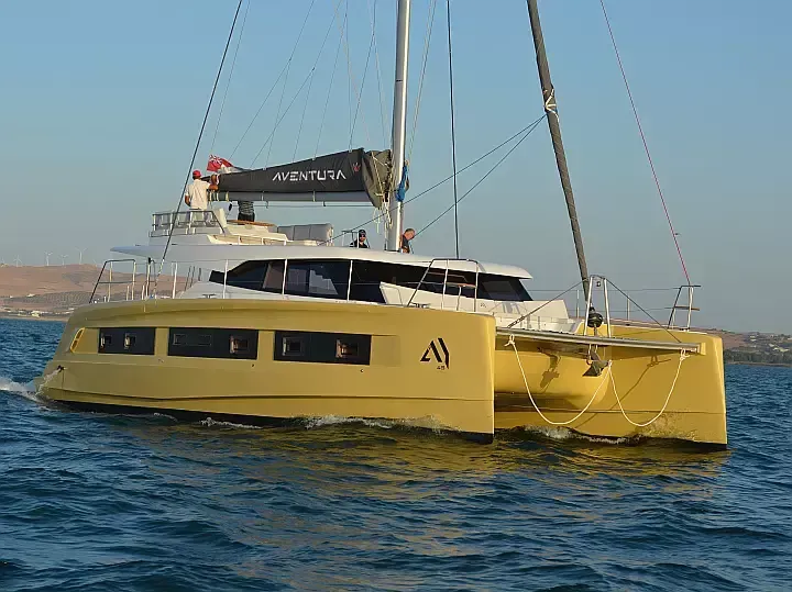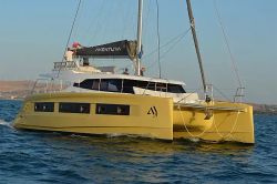 Boat equipment features a bimini and a bow thruster. It also boasts an audio system, outside speakers and a stand up paddle. The fully-equipped galley includes a fridge, a sink and kitchen utensils.