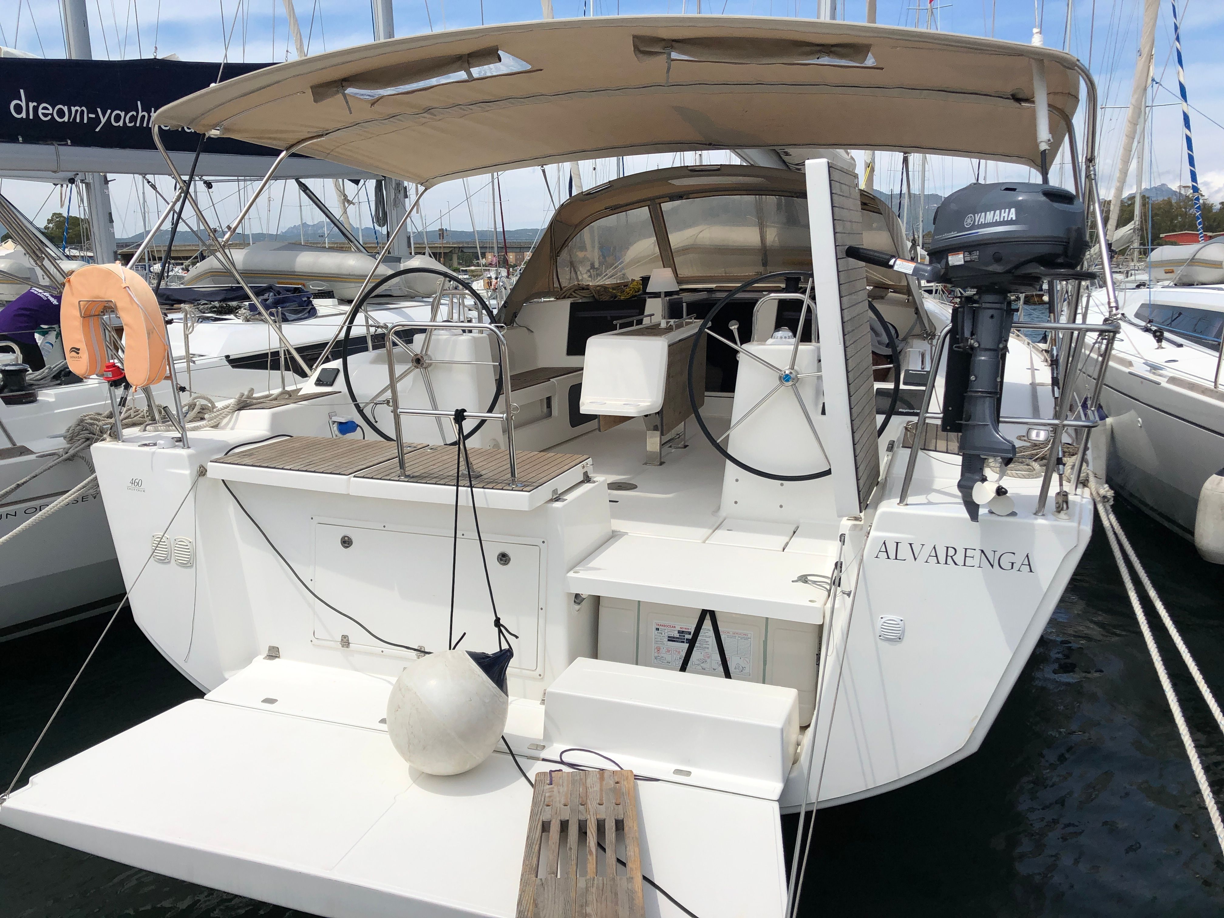 4-cabin sailing yacht Dufour 460 GL - Alvarenga was built in 2018 and it is docked in DYC Olbia Marina, Italy.