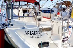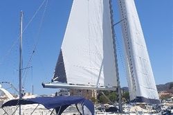 Boat equipment features a classic mainsail, a bimini and an outside GPS plotter. It also boasts an audio system, outside speakers and inside speakers. The fully-equipped galley includes a fridge, an oven, a cooker, a sink and kitchen utensils.