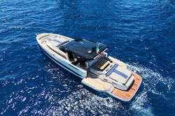 Boat equipment features a radar, a generator, a salon GPS plotter, a bimini and a bow thruster. It also boasts a flat screen TV, heating, air conditioning, an audio system and outside speakers. The fully-equipped galley includes a freezer, a coffee machine, a fridge, an oven and a cooker.