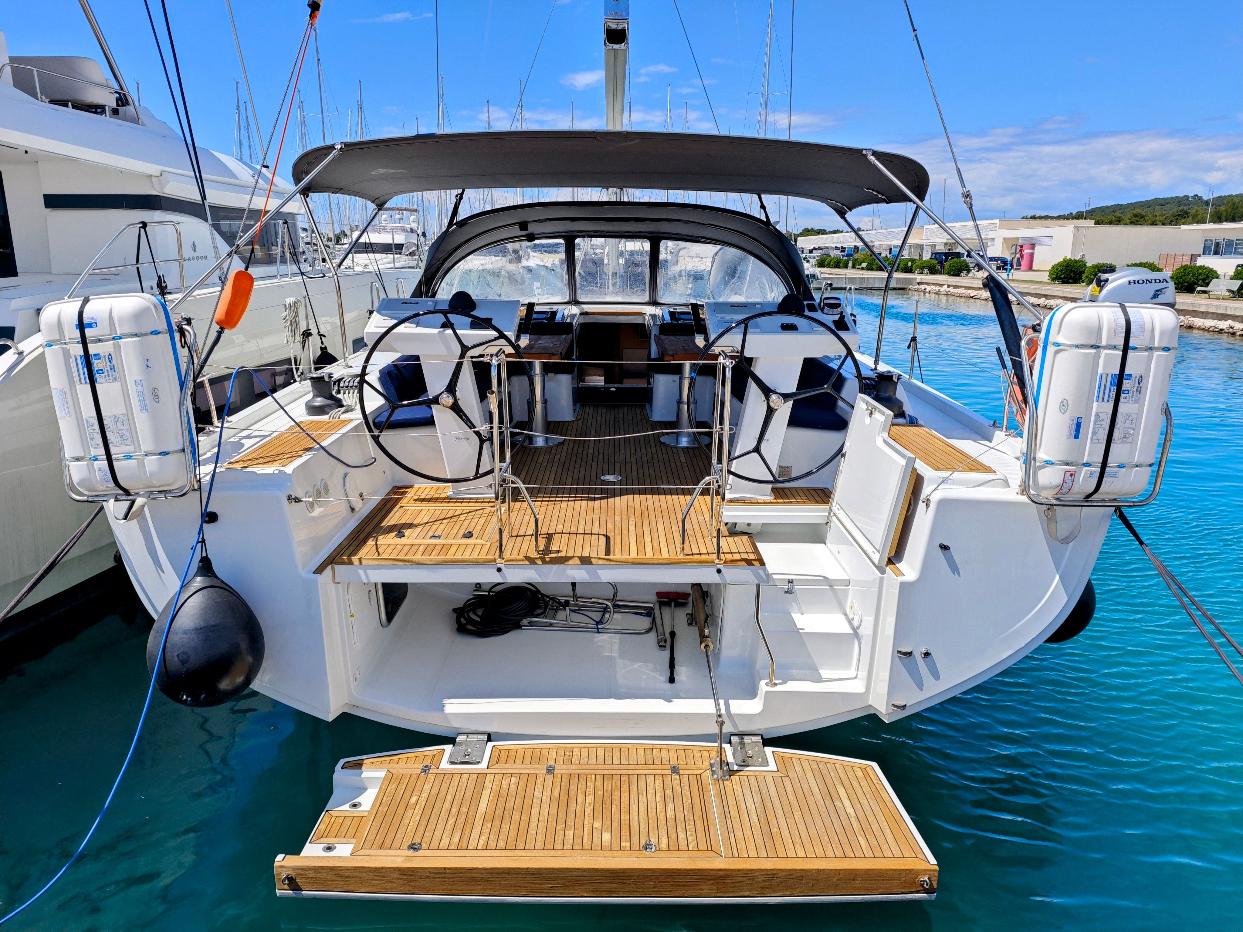 5-cabin sailing yacht Hanse 548 - Lady Ardea was built in 2020 and it is docked in D-Marin Marina Dalmacija, Croatia.