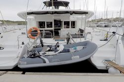 Boat equipment features a rolling mainsail, electric winches, a radar, a generator, a salon GPS plotter and a bimini. It also boasts a flat screen TV, heating, air conditioning, an audio system and outside speakers. The fully-equipped galley includes a microwave, a dishwasher, a freezer, a coffee machine and a fridge.