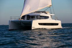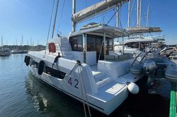 Boat equipment features a salon GPS plotter, a bimini and a bow thruster. It also boasts an audio system and outside speakers. The fully-equipped galley includes a freezer, a fridge, a cooker, a sink and kitchen utensils.