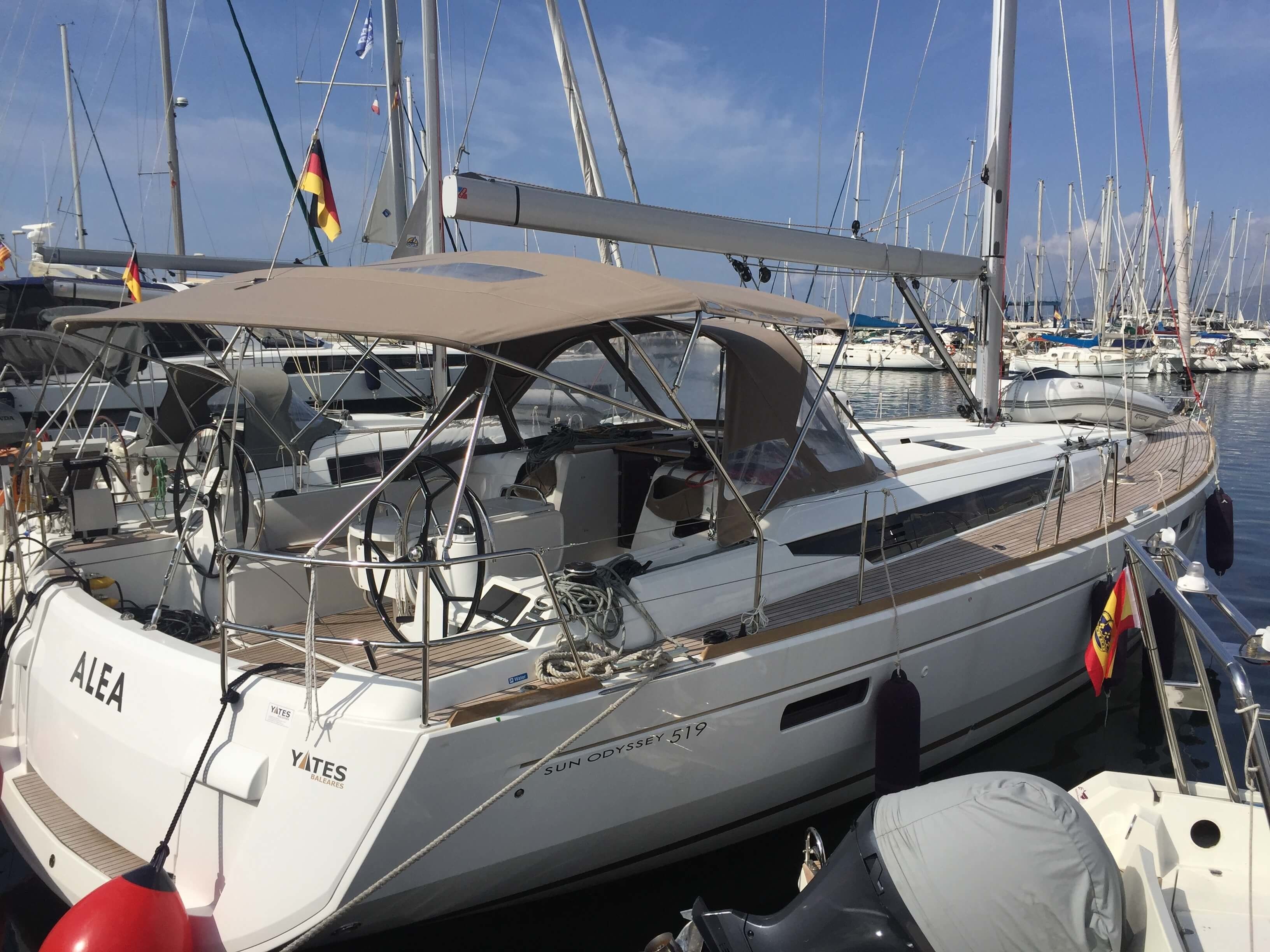 5-cabin sailing yacht Jeanneau Sun Odyssey 519 - Alea was built in 2018 and it is docked in Club Nautico can Pastilla, Spain.
