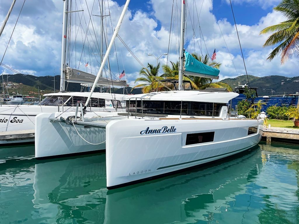 4-cabin catamaran Lagoon 40 - Anna Belle was built in 2023 and it is docked in Marina Tortola, Caribbean.