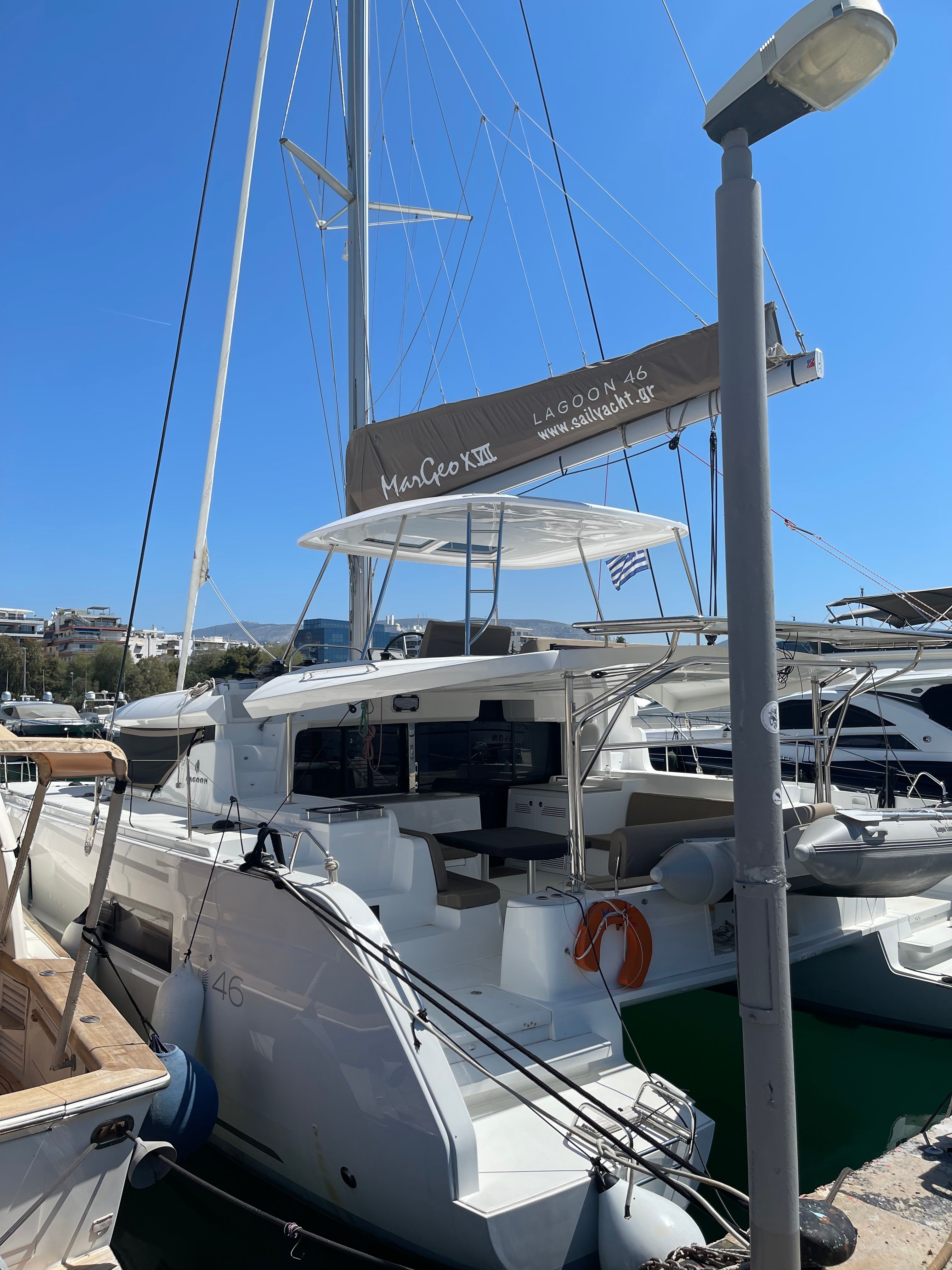 4-cabin catamaran Lagoon 46 - Margeo 17 was built in 2022 and it is docked in Marina Alimos, Greece.