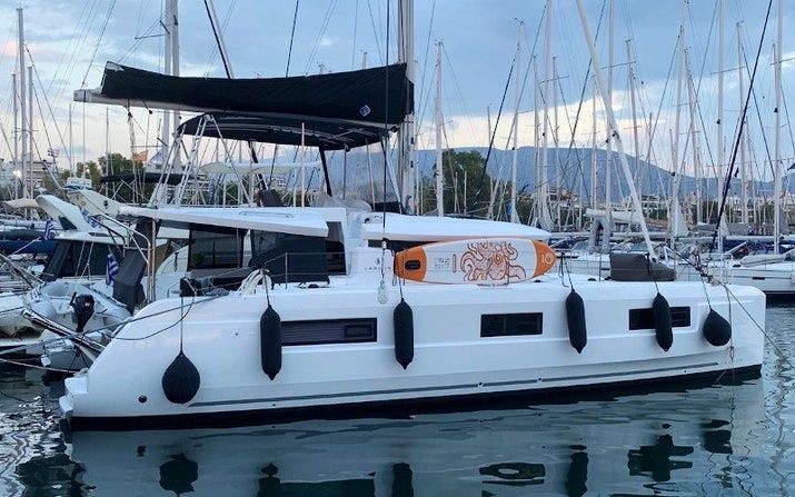 4-cabin catamaran Lagoon 46 - White Pearl was built in 2020 and it is docked in Marina Alimos, Greece.