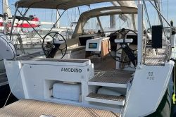 Boat equipment features a classic mainsail, solar panels, a radar, a bimini and an outside GPS plotter. It also boasts an audio system, outside speakers, a stand up paddle and inside speakers. The fully-equipped galley includes a coffee machine, a fridge, an oven, a cooker and a sink.