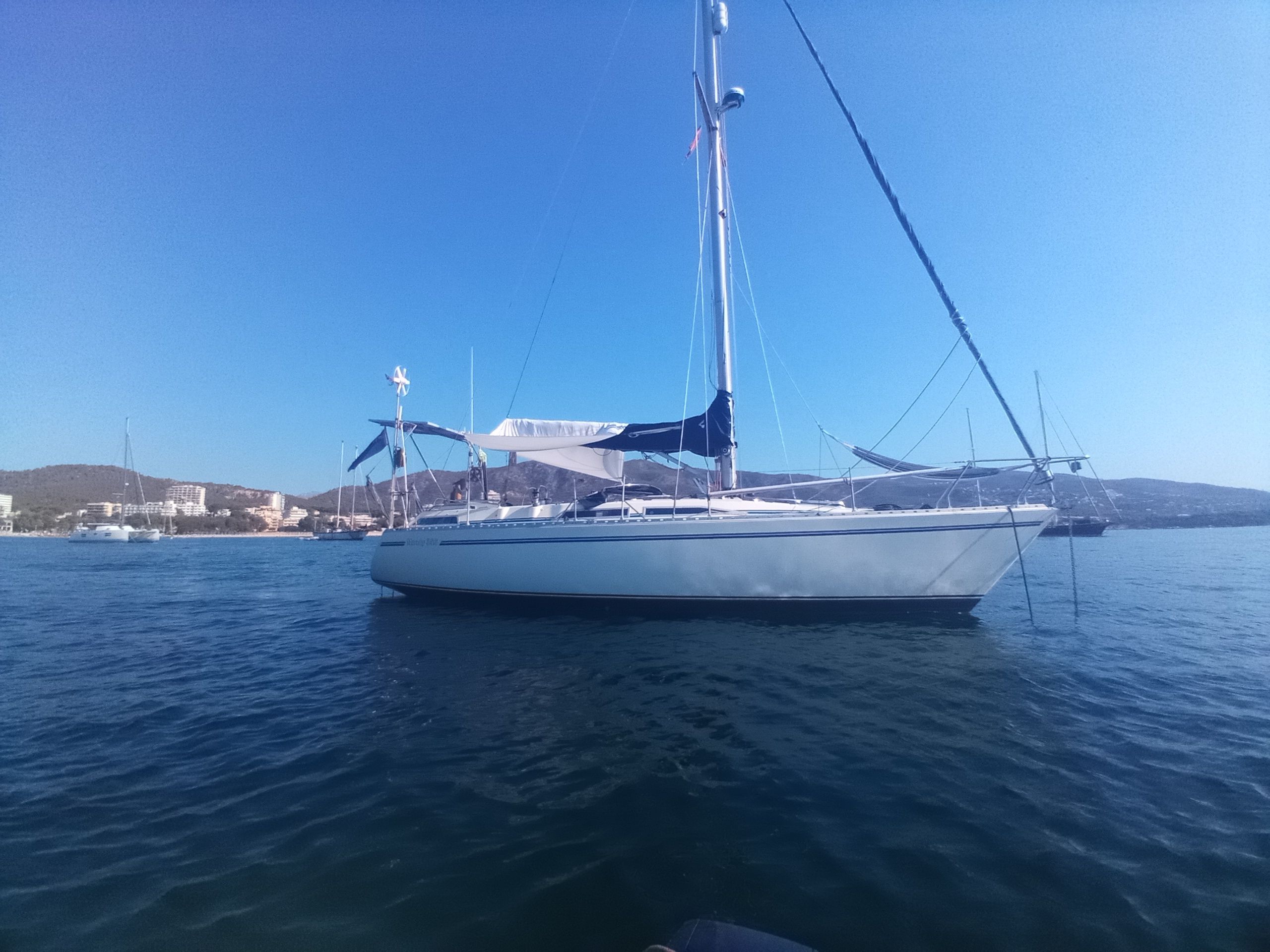 2-cabin sailing yacht Moody 346 - Sailing Tamarind was built in 1987 and it is docked in Club Nàutic Sant Antoni de Portmany, Spain.