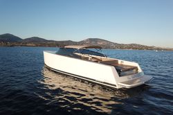 Boat equipment features a radar, a generator, a BBQ, a bimini and a bow thruster. It also boasts a flat screen TV, heating, air conditioning, a washing machine and an audio system. The fully-equipped galley includes a microwave, a dishwasher, an ice maker, a freezer and a coffee machine.