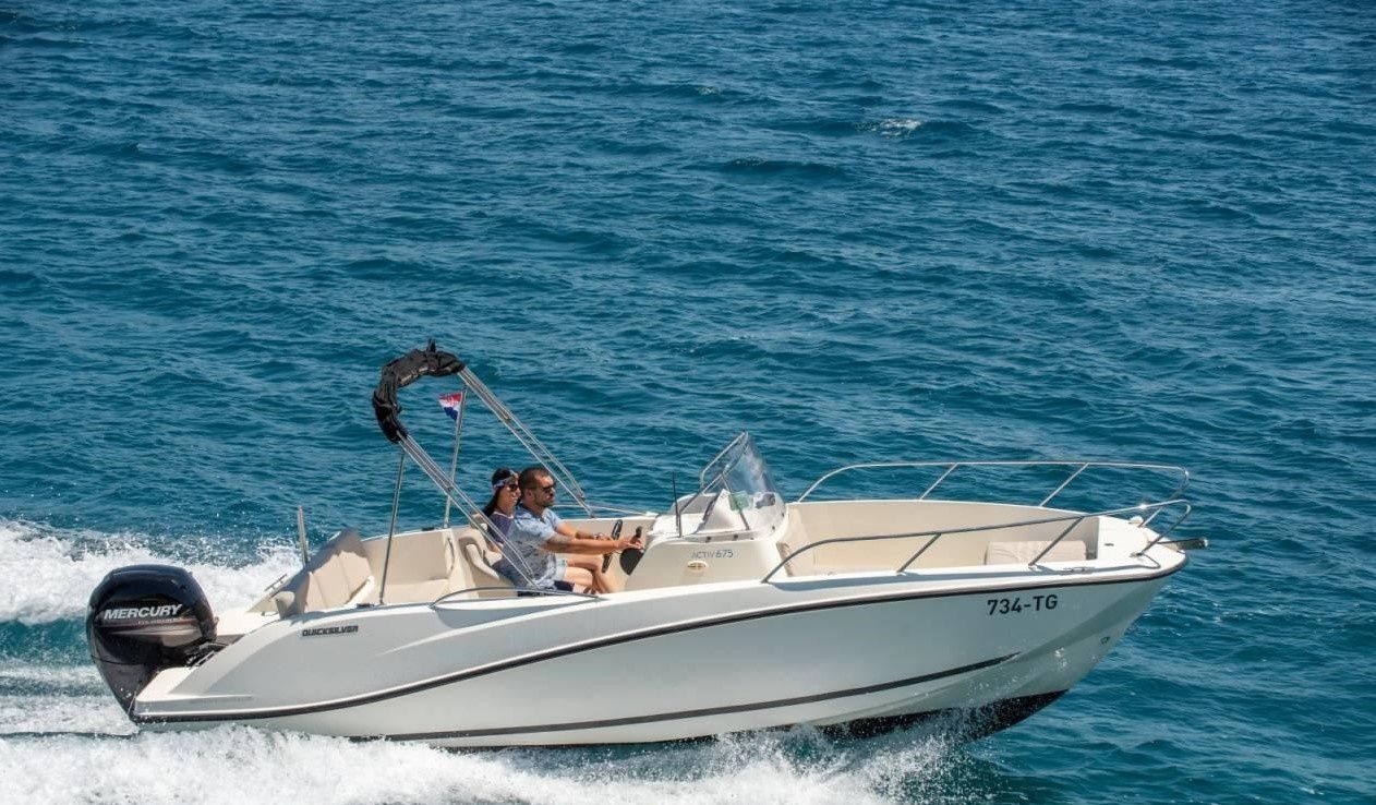 Boat Quicksilver 675 | Activ Open can be rented as a bareboat, or you can rent a professional skipper.