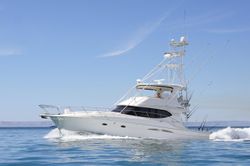 Boat equipment features a radar, a generator, a bimini and an outside GPS plotter. It also boasts a flat screen TV, heating, air conditioning, an audio system and outside speakers. The fully-equipped galley includes a microwave, a freezer, a fridge, a cooker and a sink.