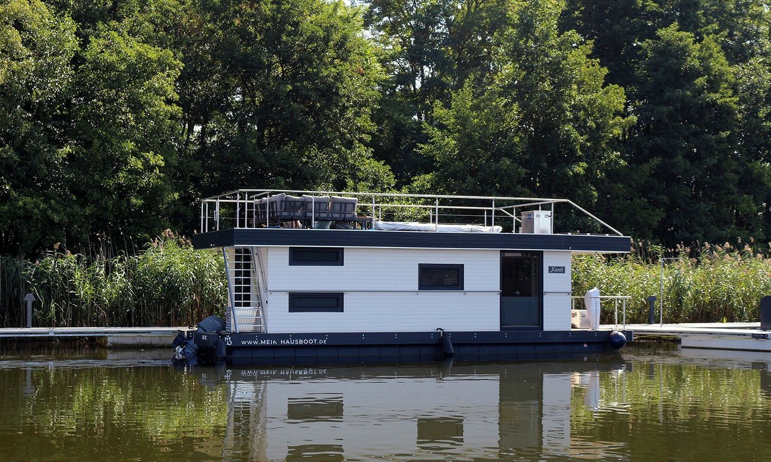The Tom Sawyer TS1000 Pascagoula houseboat was built in 2019, and it is docked in Station Himmelpfort, Germany.