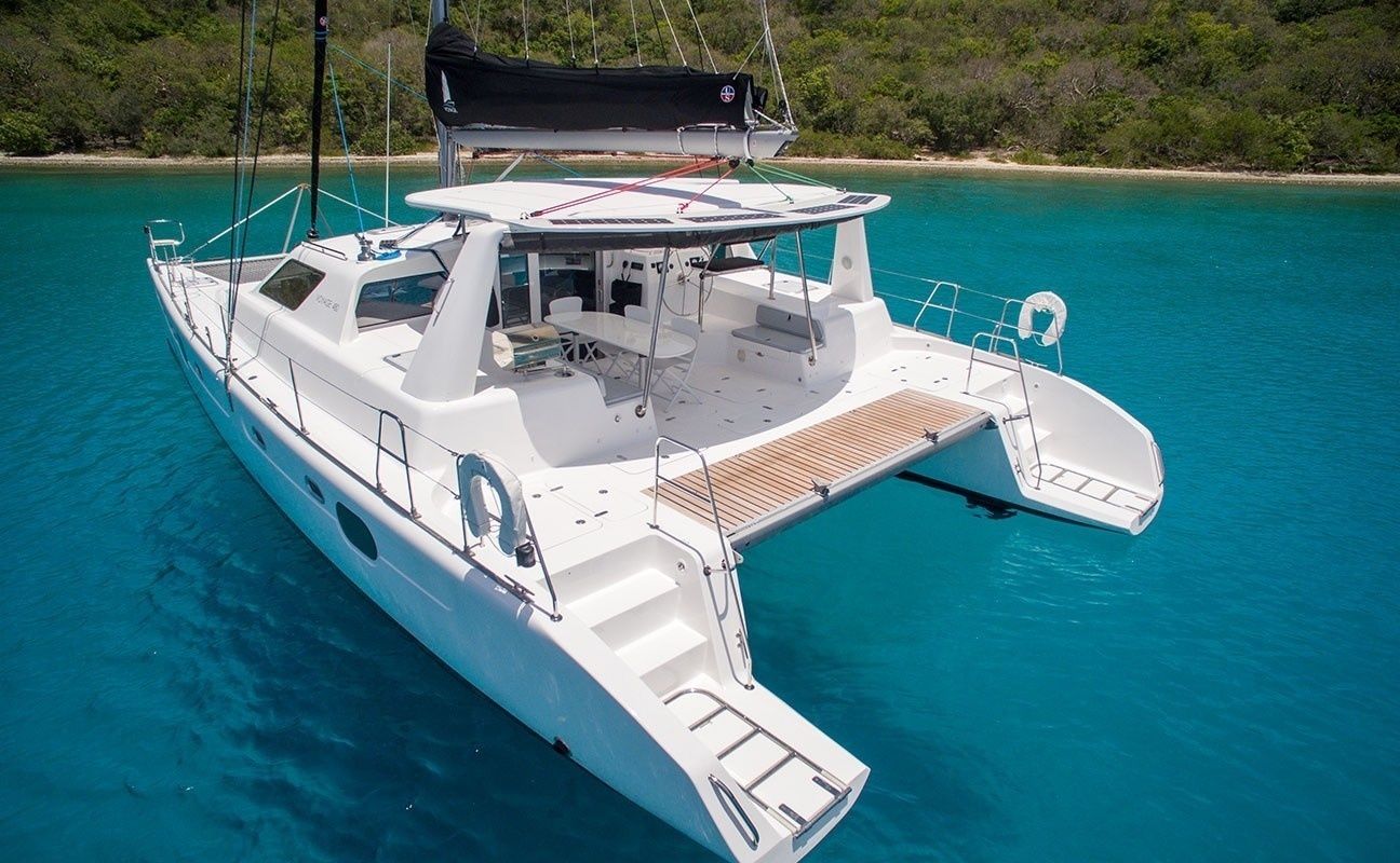 This catamaran is operated by the charter company Voyage charters.