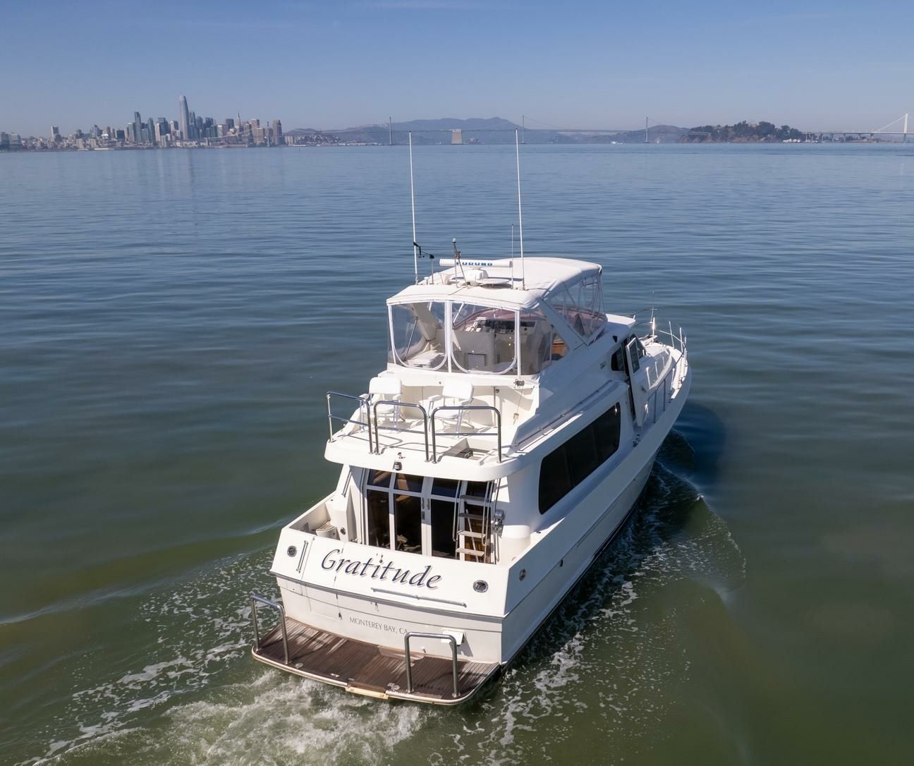 El iot a motor de 3 cabines Custom Built 52 - Gratitude es va construir el 2001 i està atracat a Ballena Bay, EUA.