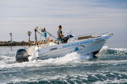 Motorový člun Astilux AX 600 Open - TCP vyroben v roce 2023 je vhodný pro 8 lidí. Je zakotven v Marina Deportiva del Puerto de Alicante, Španělsko.
