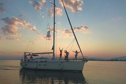 4kajutová plachetnice Bavaria 44 - Calypso byla vyrobena v roce 2002 (zrenovovaná v roce 2017) a kotví v přístavu Keramoti marina, Řecko.