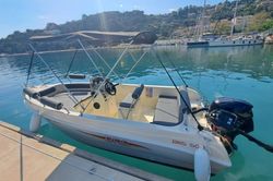 Motorový člun Compass 165 - Orion vyroben v roce 2023 je vhodný pro 6 lidí. Je zakotven v Marina Argostoli, Řecko.