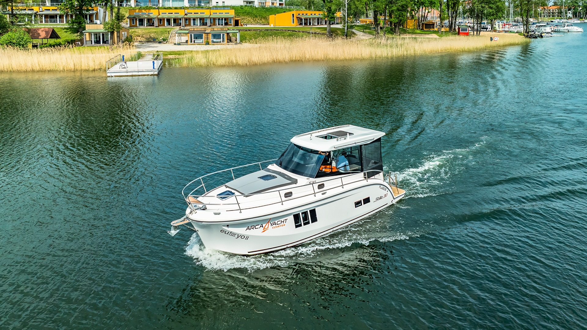 3kajutová motorová jachta Stillo 30 - Euforyo 2 byla vyrobena v roce 2023 a kotví v přístavu Stanica Wodna Stranda, Polsko.