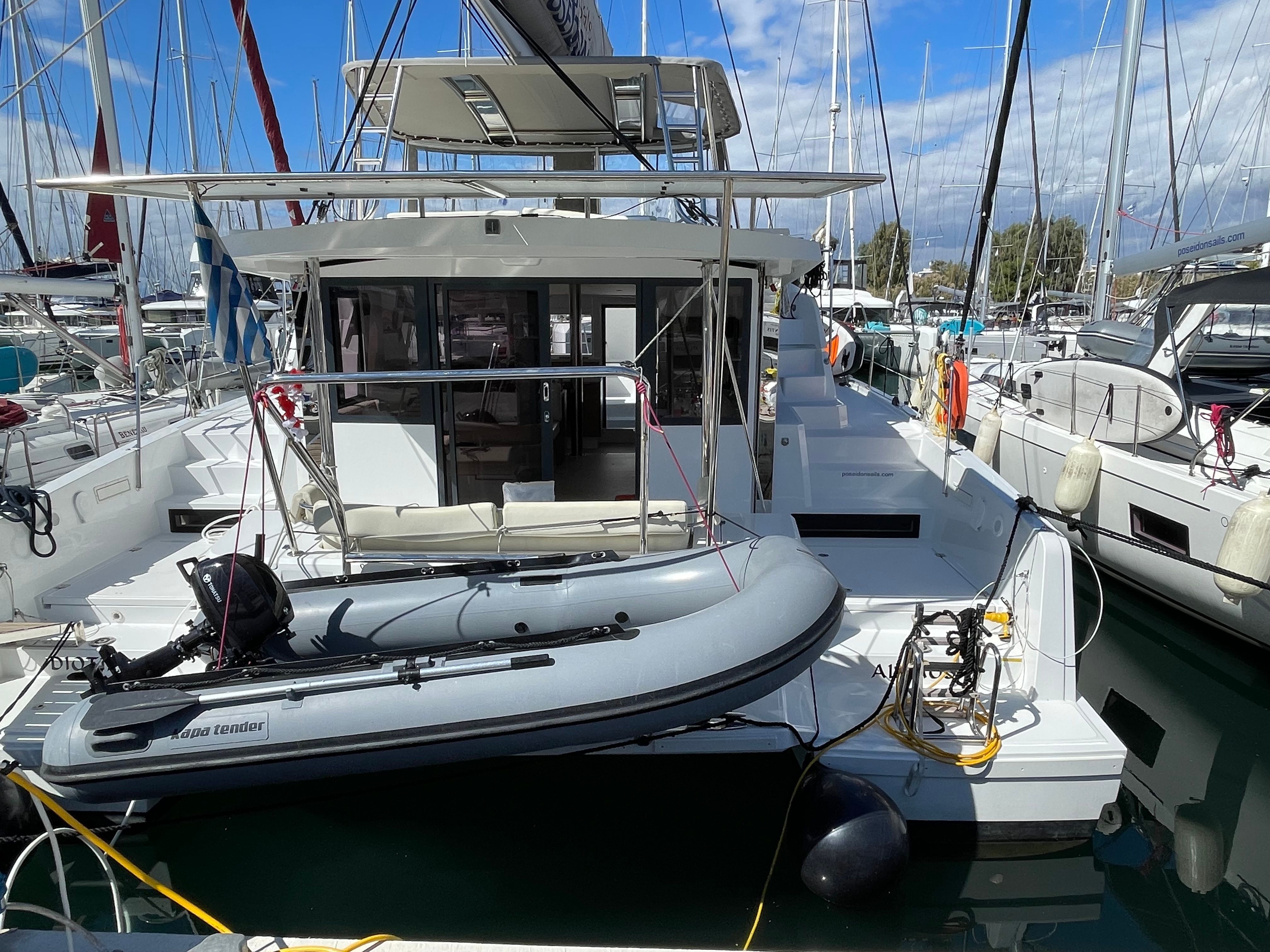 Bali 4.2 - Diotima katamaran med 6 kahytter er bygget i år 2025 og ligger i lystbådehavnen Marina Alimos, Grækenland.