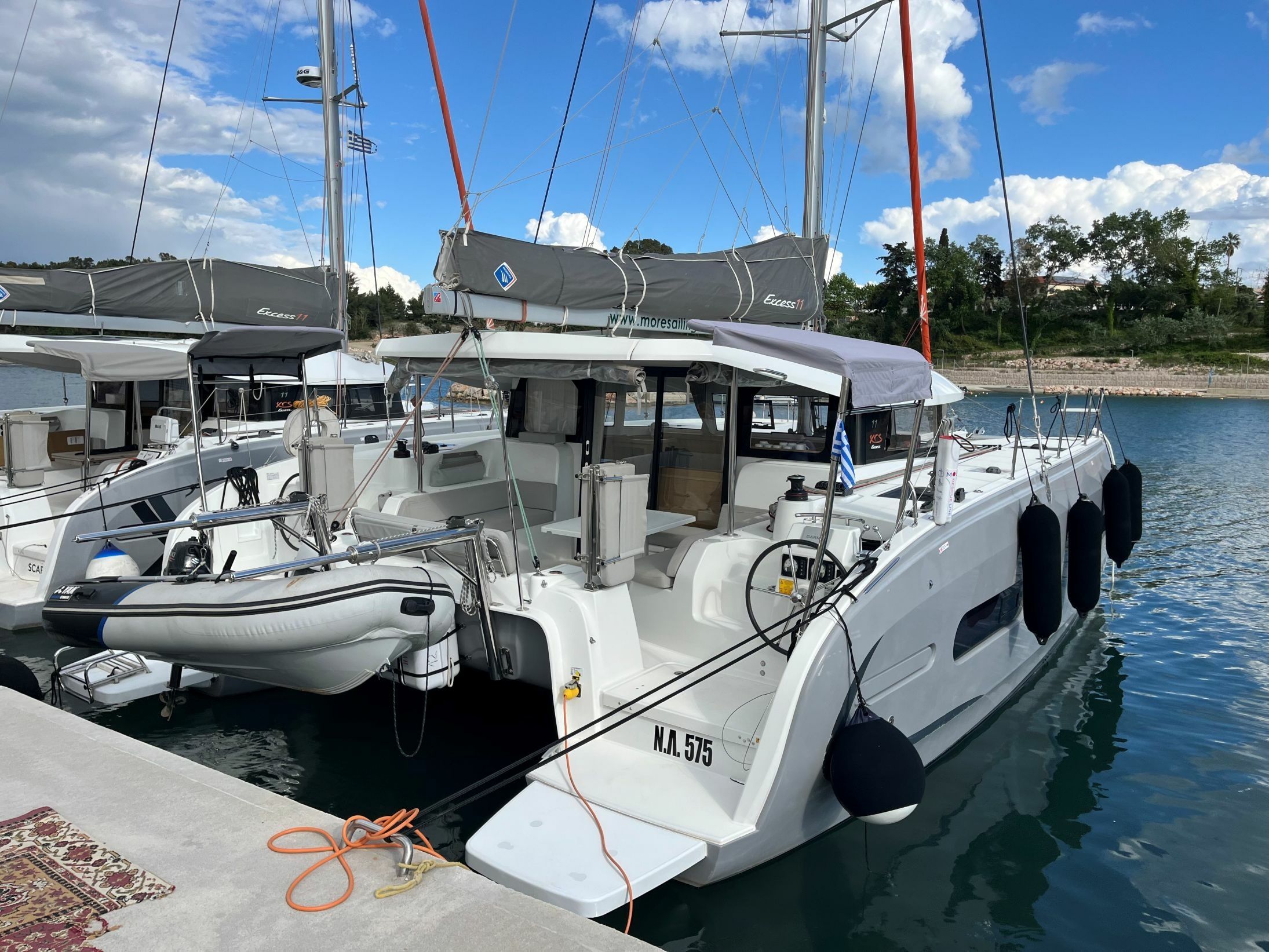 Excess 11 - Ella katamaran med 6 kahytter er bygget i år 2023 og ligger i lystbådehavnen Mytikas Port Preveza, Grækenland.