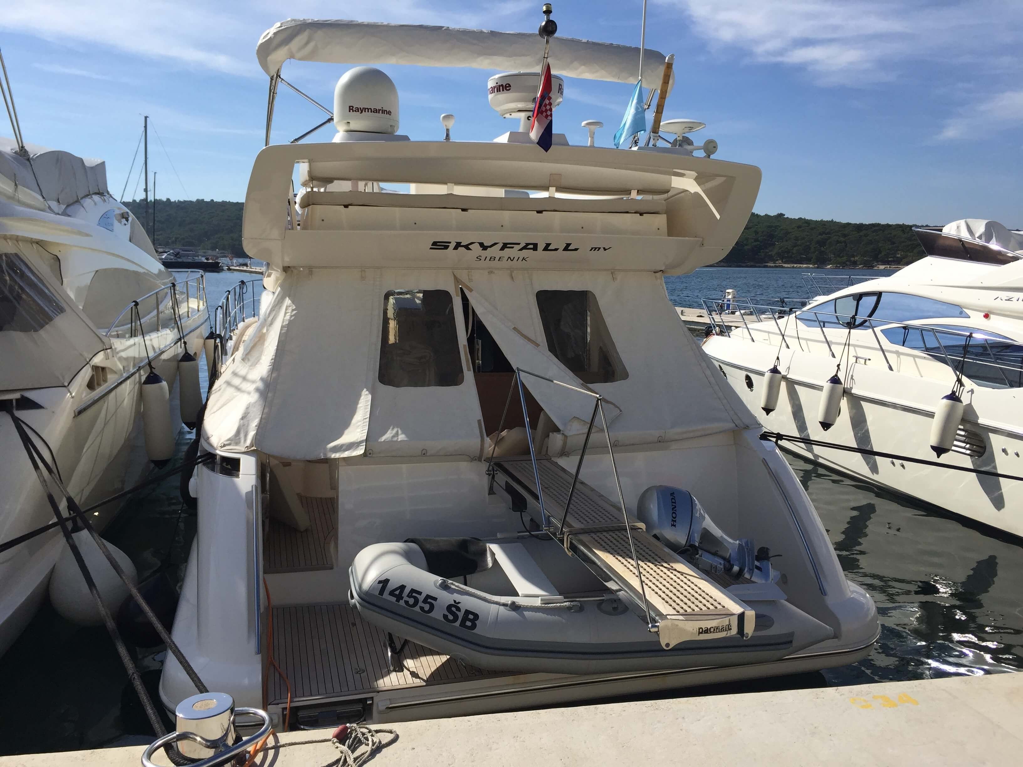 3-Kabinen Motoryacht Azimut 47 Fly - Skyfall wurde im Jahr 2009 gebaut und liegt in D-Marin Marina Mandalina, Kroatien.