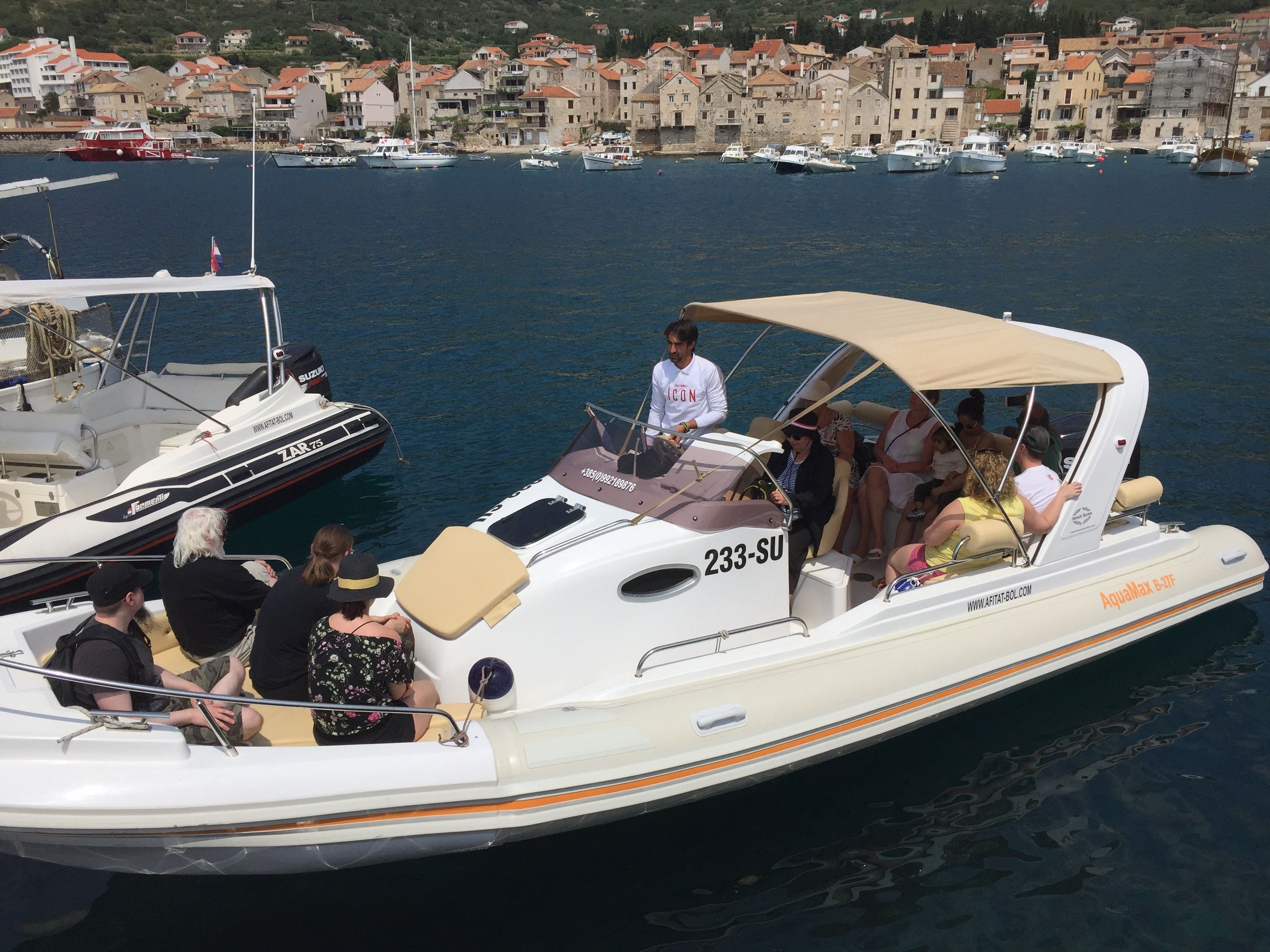 Das Motorboot gehört zur Bumbar Rent Hvar Charter-Flotte.
