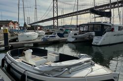 Das Bayliner XR7 - BubbleSea 2 Motorboot aus dem Jahr 2017 bietet Platz für 12 Personen. Es ist in Belem Dock, Portugal angedockt.