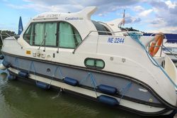 Das Hausboot Espade Concept Fly Les Canalous 94 wurde 1994 gebaut und liegt im Yachthafen Port d'Homps, Frankreich.