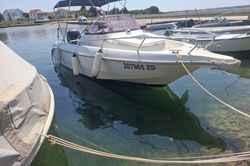 Das Fisher 22 - HM 1 Motorboot aus dem Jahr 2018 bietet Platz für 7 Personen. Es ist in Pag Port, Kroatien angedockt.