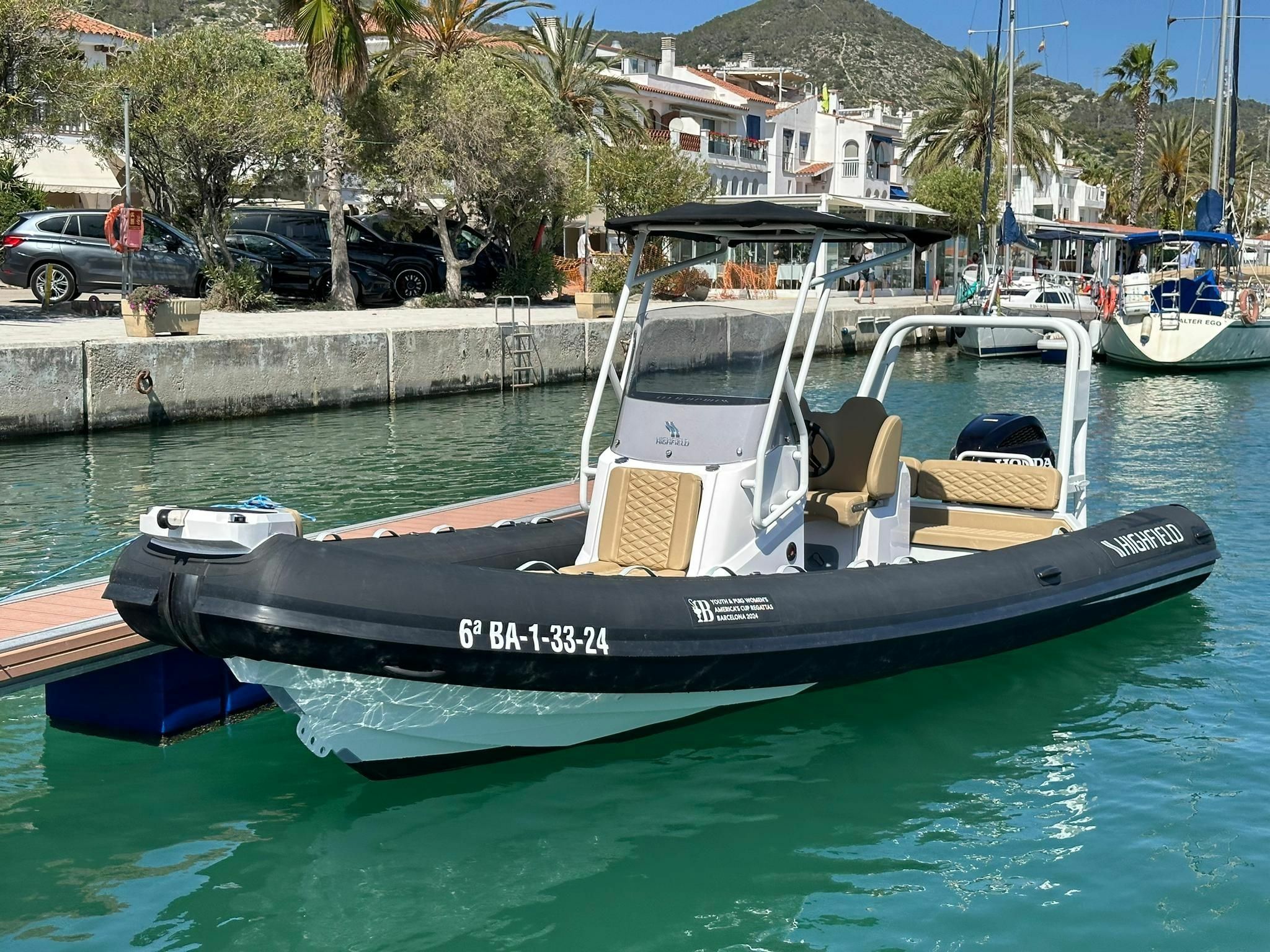 Das Highfield 700 - Apex Motorboot aus dem Jahr 2024 bietet Platz für 10 Personen. Es ist in Port de Sitges - Aiguadolç, Spanien angedockt.