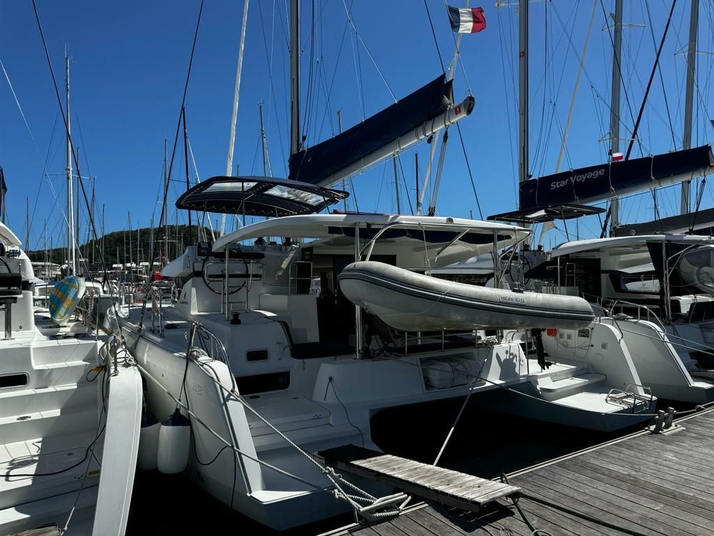 Der 6-Kabinen Katamaran Lagoon 42 - Oscar 6 wurde im Jahr 2019 gebaut und liegt in Marina du Marin, Karibik.