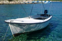 Das Pasara 460 - 81 Motorboot aus dem Jahr 1981 bietet Platz für 5 Personen. Es ist in Hvar Port, Kroatien angedockt.