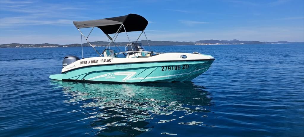 Das Motorboot gehört zur Rent a boat Palac Charter-Flotte.