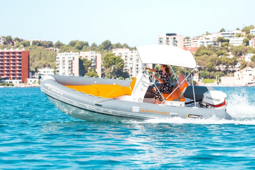 Das Motorboot gehört zur OK Boats Mallorca Charter-Flotte.