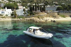 Das Zodiac 7.5 - 23 Motorboot aus dem Jahr 2023 bietet Platz für 12 Personen. Es ist in Estartit Marina, Spanien angedockt.