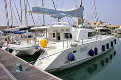 Este catamarán está gestionado en Italia por el chárter Barcando Charter.
