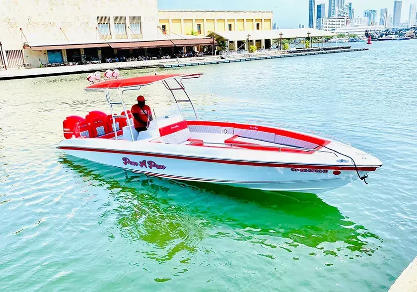 Esta lancha a motor Bravo 290 - Arco Iris 5 2016 es adecuada para 10 personas. Está atracada en Porto Cartagena, Colombia.